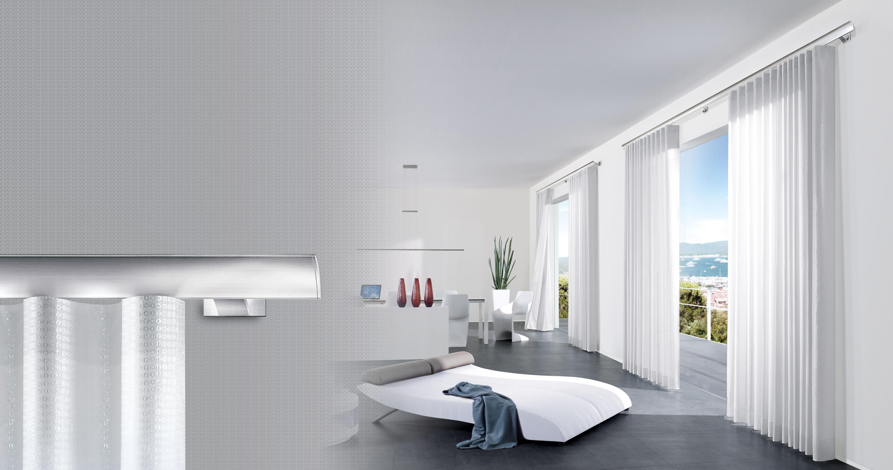Het Duitse bedrijf Interstil is van mening dat de rails gezien mag worden. Dit leidt tot succesvolle innovaties en prachtige vormgeving. Met hun ontwerpen van gordijnstangen, binnenloopsystemen en paneelsystemen worden de grenzen van design verlegd. Laat u inspireren